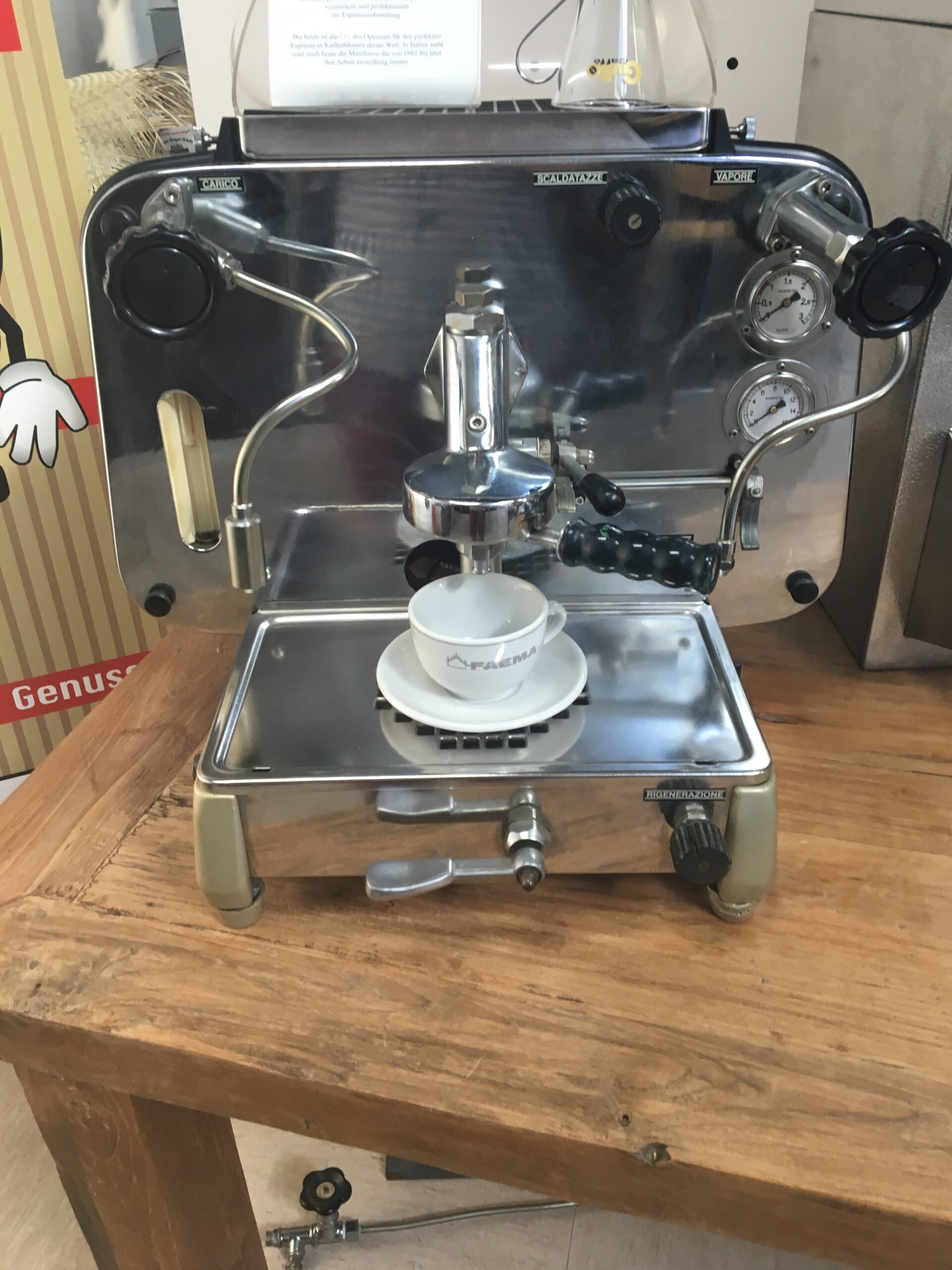 Faema ist ein renommierter Hersteller sowohl von Kaffeevollautomaten, vor allem aber von Siebträgermaschinen.