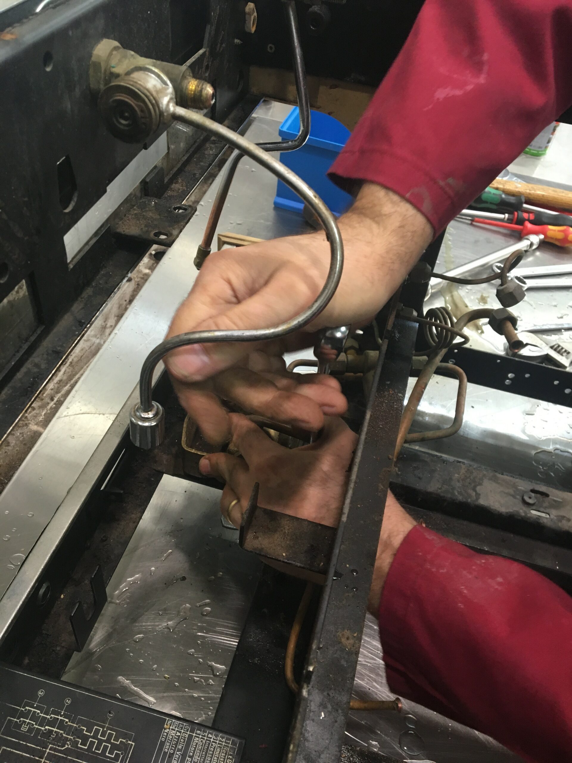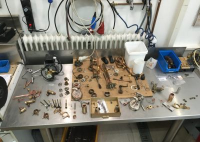 wird die Maschine wieder zusammengebaut. Sie läuft einige Tage zur Probe um sicher zu gehen, dass die Kaffeemaschine nirgendwo Wasser verliert.