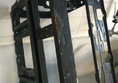 Das Chassis wird vom alten Lack und Rost befreit, neu grundiert und in der Ursprungsfarbe lackiert.