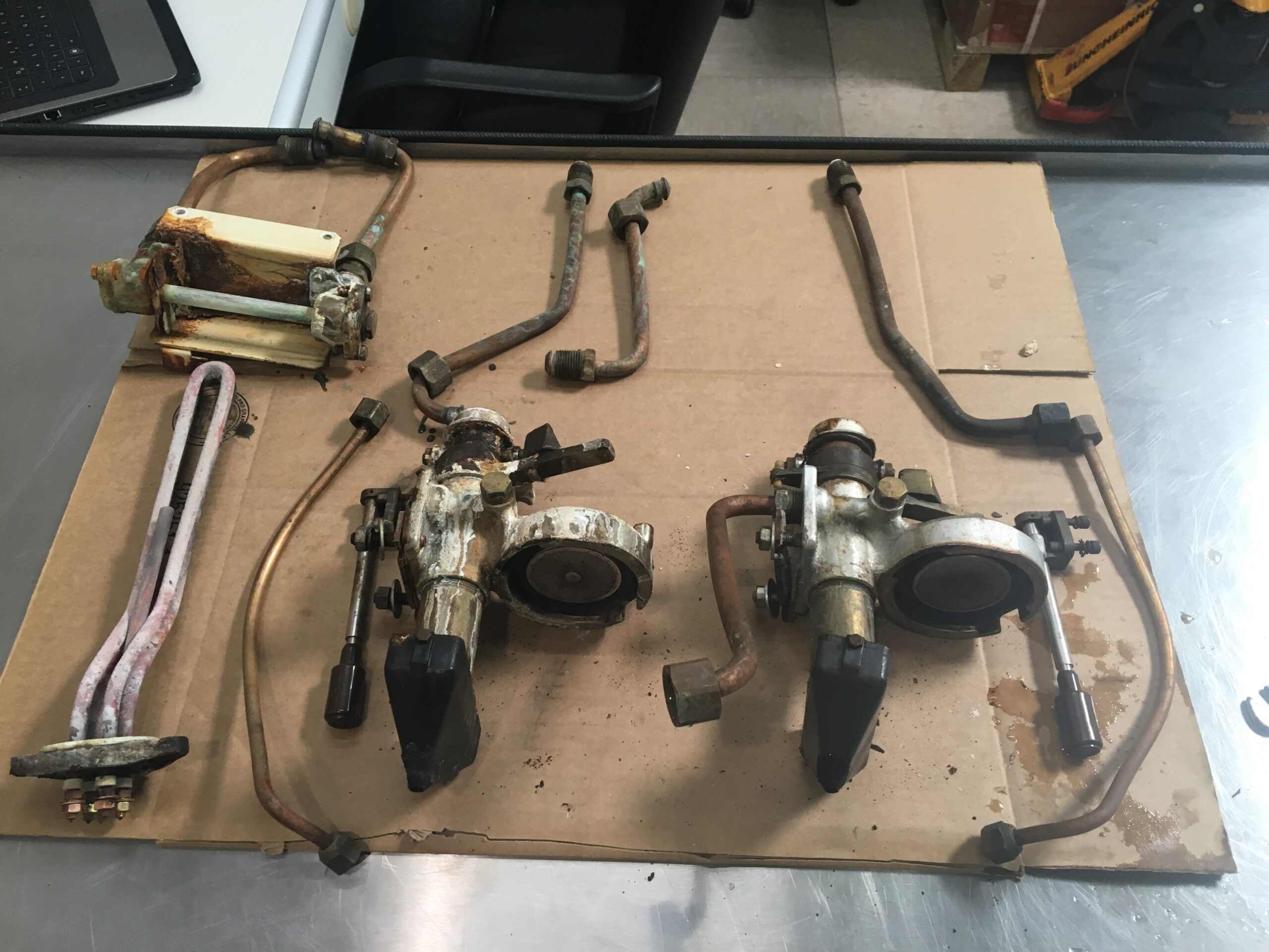 Kupferleitungen, Brühgruppen und Kessel werden entkalkt und poliert.