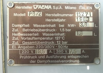 Typenschild Faema P4