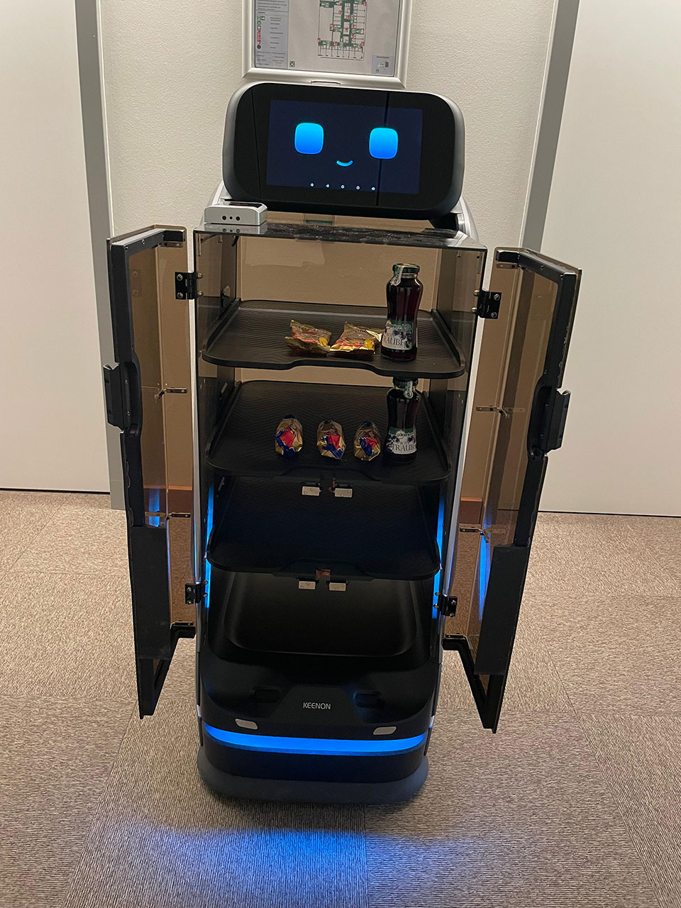 Ein erstes Einsatzgebiet ist die Wahlleistungsstation 3. Dort unterstützt Betty (Keenon Dinerbot T9 Pro) das Personal, indem sie auf festen Runden Getränke, kleine Snacks und Hygieneartikel zu den Zimmern bringt. Dies ermöglicht es, Wünsche der Patient:innen schnell zu erfüllen, ohne dass Pflegekräfte ihre eigentlichen Aufgaben unterbrechen müssen.