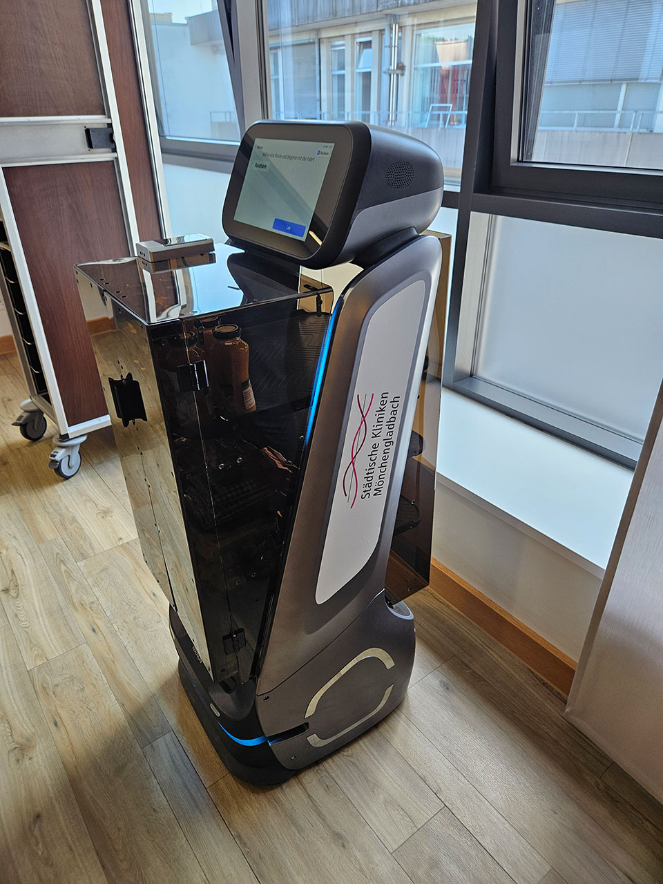 Bei einem Blick in den Krankenhausalltag fällt schnell auf: Die Mitarbeiter:innen legen täglich weite Wege zurück, um die Patient:innen optimal zu versorgen. Um das Team zu entlasten und für die wirklich wichtigen Belange freizuspielen, setzen unsere Partner, die Städtischen Kliniken Mönchengladbach, nun einen Serviceroboter ein: Betty.